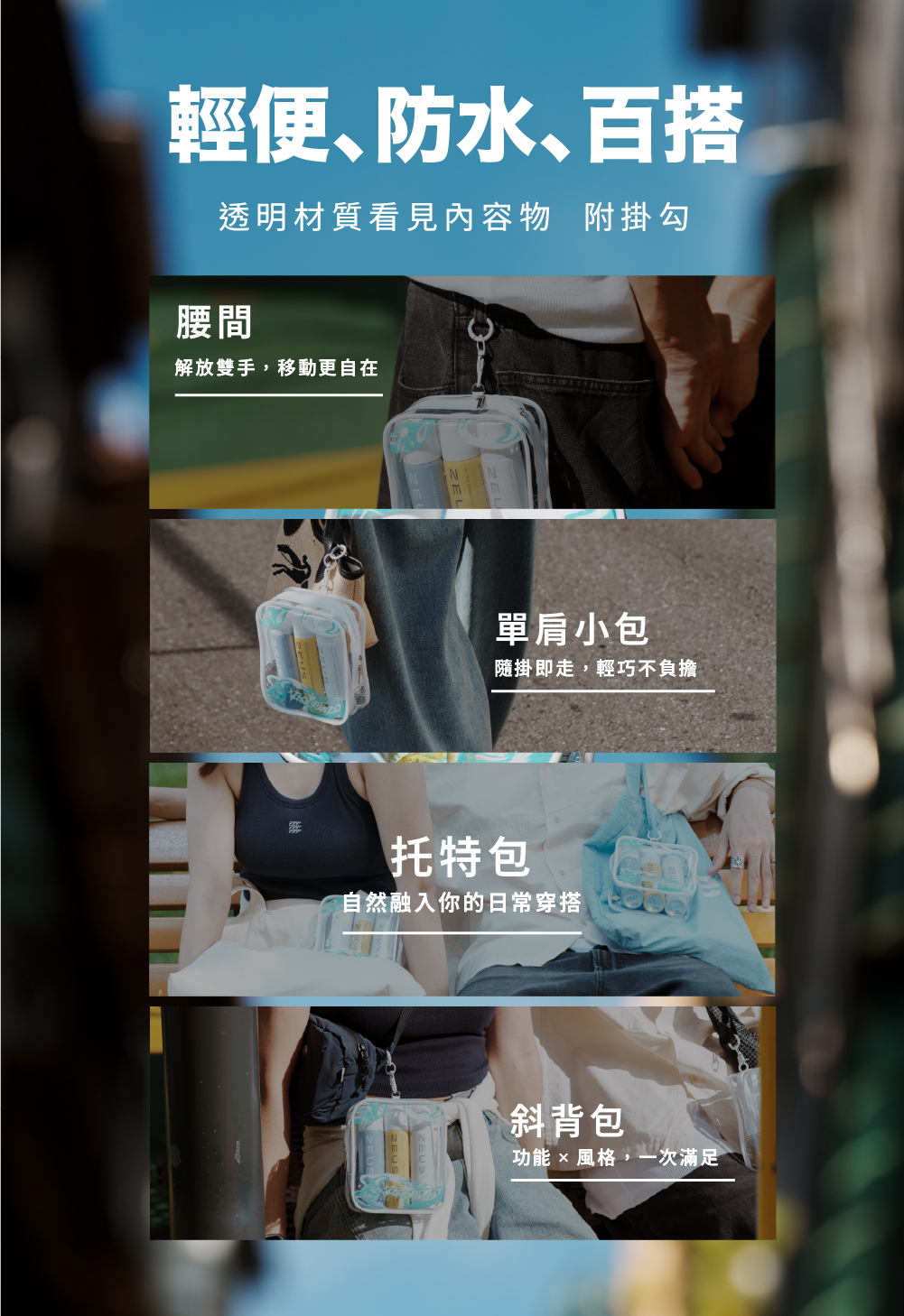 透明隨行噴霧包|防水耐用、附掛勾 & 可調整背帶|肩背、腰掛、扣在包包,輕鬆隨行。