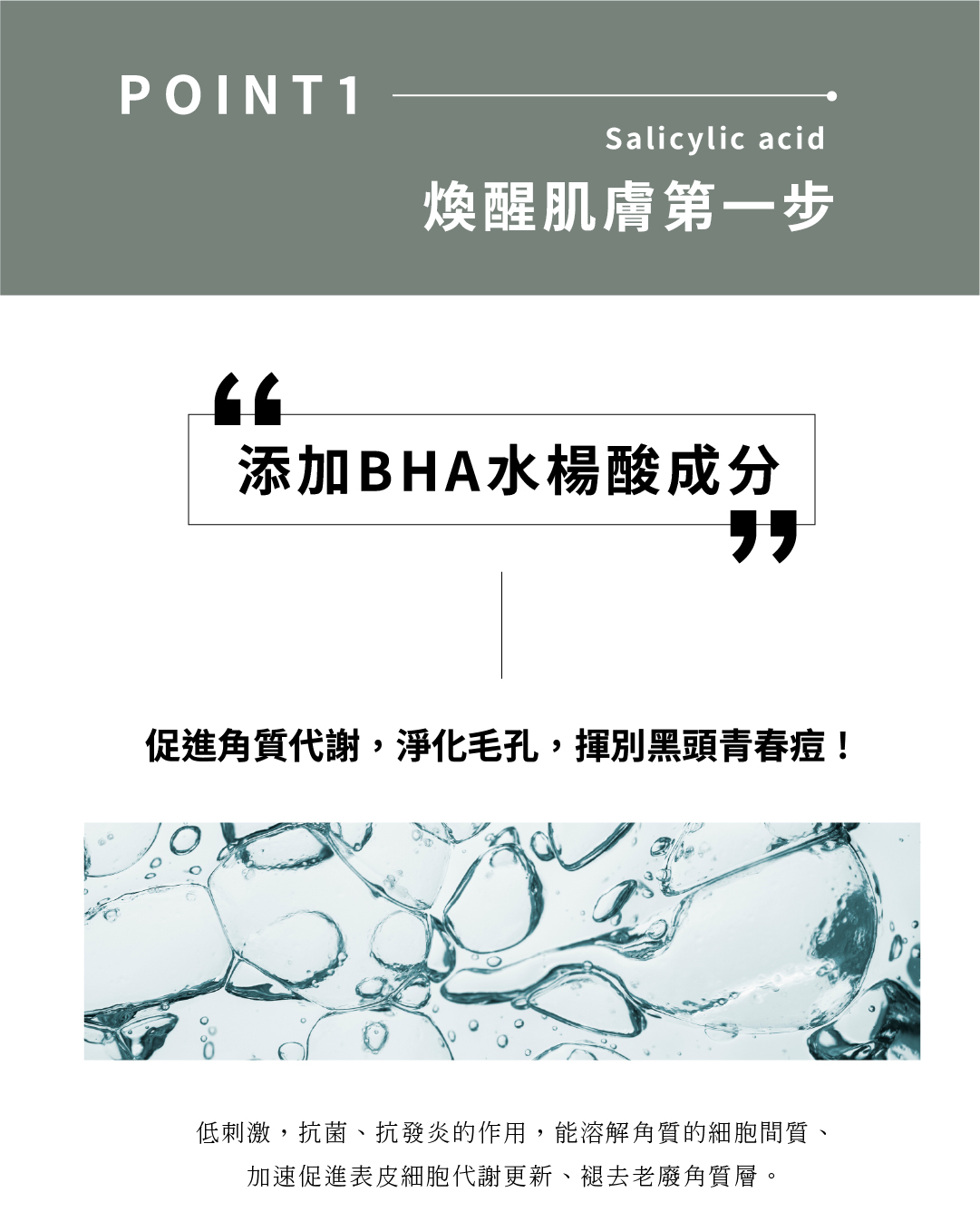 • 毛孔淨化|水楊酸BHA 代謝老廢角質、緊緻毛孔