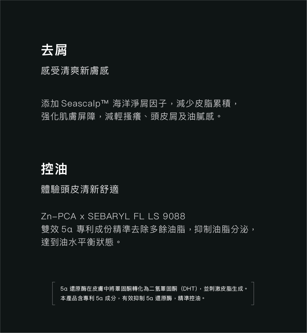 • 5α還原酶 + 海洋淨屑|改善頭皮出油、搔癢、頭皮屑