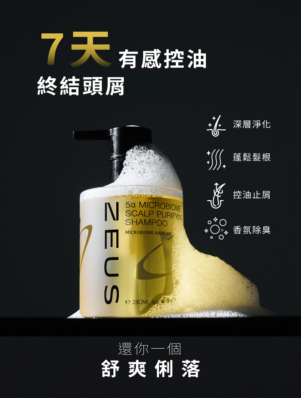 • 控油抗屑:5α還原酶+海洋淨屑,改善出油、頭皮屑、搔癢